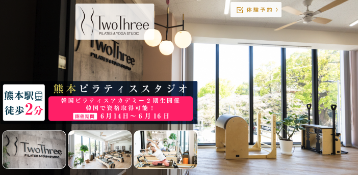 - ピラティススタジオTwoThree 熊本駅前店:西区で最大7名の少人数制レッスン