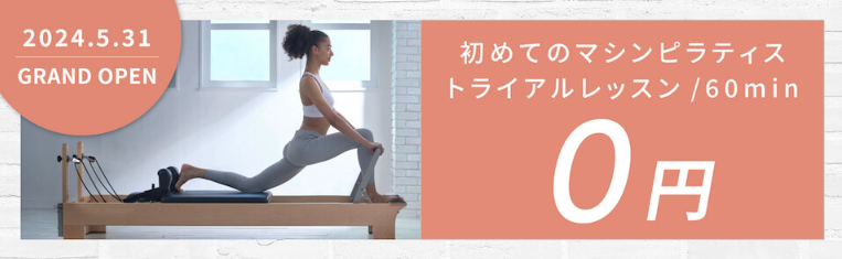 | プログラム内容 | グループレッスンリフォーマーやタワー付きリフォーマーを使用 最大7名の少人数制レッスン プライベートレッスン 体験レッスン実施中 |