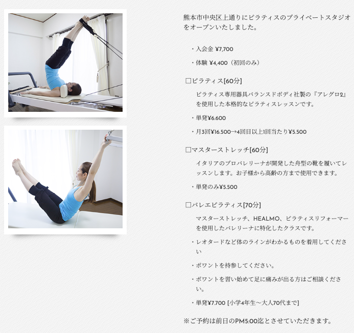 - 熊本で安いピラティス&マシンピラティスの人気教室