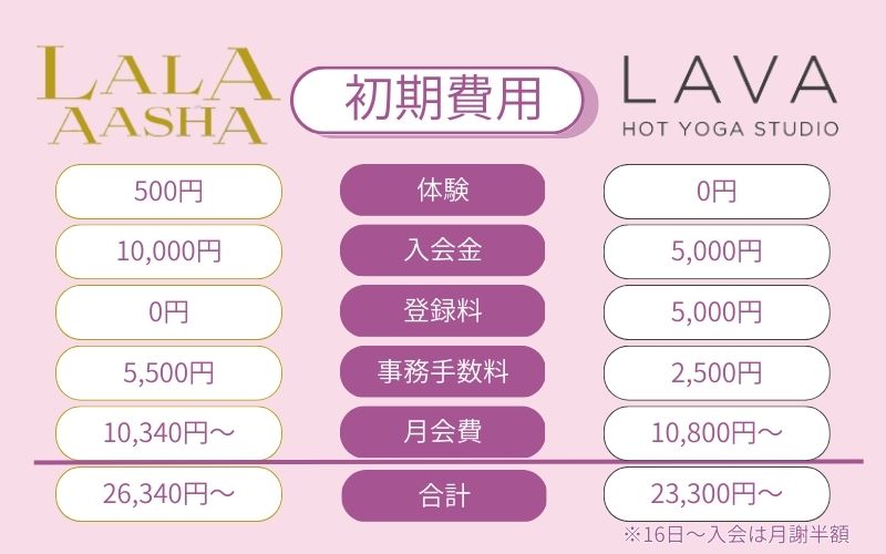 回数券受講で見ると、料金はさほど変わらないように感じますね。 上記の表だけを見ると、マンスリーの料金としてはララアーシャの方が、月¥1,000前後安いようです。 しかし、LAVAの方が店舗間の利用が可能であったりするため、旅行中や帰省中まで場所に囚われず通えるということを考えるとお得になりますね! ただ、ララアーシャに関しても、タオルやシャンプー・スキンケアなどのアメニティが基本料金に含まれるため、ご自身がどのようにスタジオを利用していきたいか、ということを考えた上でプランを選ばれるのがいいと思います! 荷物も少なく、その店舗だけで十分!という方であればララアーシャ、オプションも複数組み合わせて全国いろんな店舗に通ってみたい!と