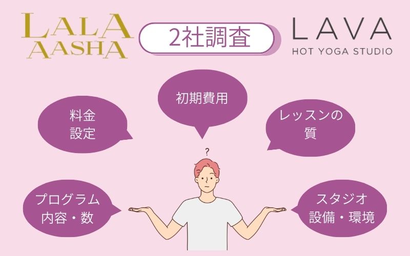 この記事では、常に人気のあるヨガ「ララアーシャ」「ホットモノウェルジオLAVA」の違いについて、費用やレッスンの内容などを比較し、ご紹介していきます。