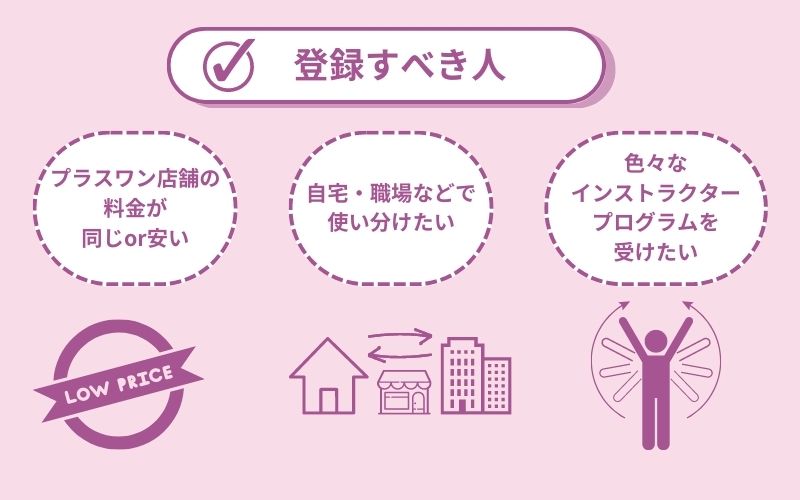 プラスワン店舗を登録していない場合との差額は¥2,000/月になるため、2店舗通う予定がない方は登録しない方が毎月¥2,000お得に通うことができるというわけですね!