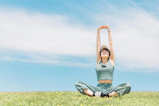 レッスンの最初は深呼吸をして、気持ちを整えながら準備運動やストレッチの時間です。