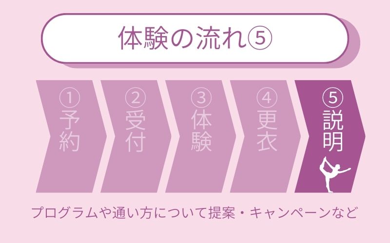 ⑤:通い方や料金、他のプログラムの説明を受ける