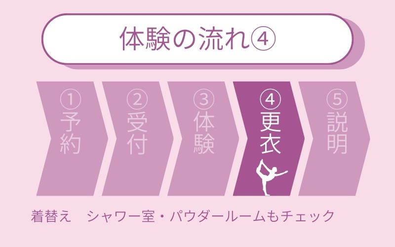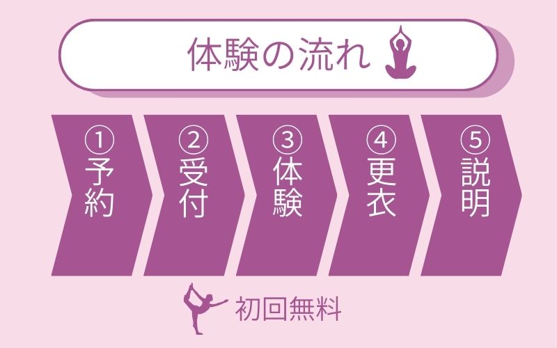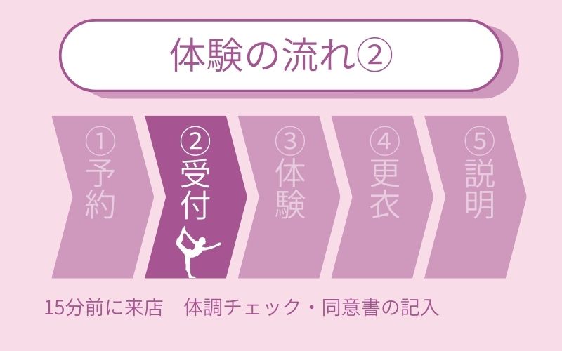 体験当日は、体調チェックや同意書の記入・スタジオ内の案内があるため、遅くても15分前までには来店するようにしましょう。