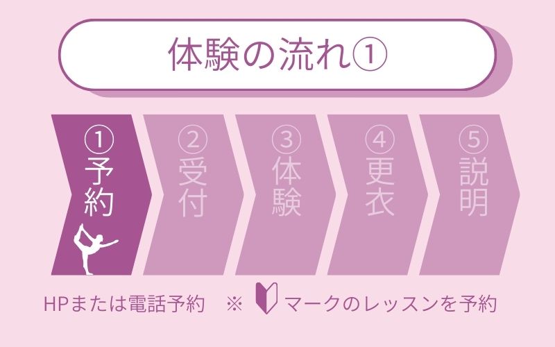 体験したいレッスンを調べ、HP・もしくは電話で予約をします。