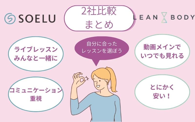 ソエルとリーンボディの基本的な情報やレッスンの違いなど、徹底比較していきます。
