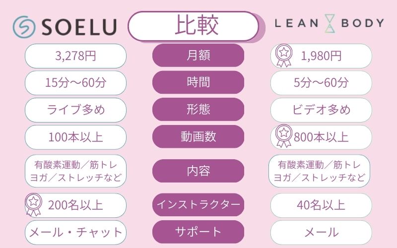 ソエルとリーンボディの比較を詳しく説明しました。どちらも、人気にオンラインフィットネスです。